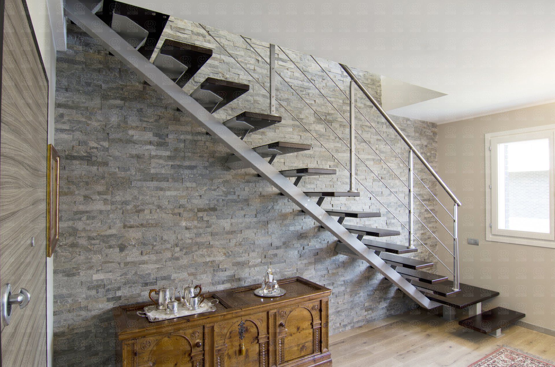 Le scale in legno e acciaio proposte da C.P.R. Scale sono prodotti unici, di altissima qualità artigianale e che fondono in un unico elemento le caratteristiche di due materiali semplici e conosciuti come il legno e l’acciaio. Il legno è vivo, caldo e versatile; l’acciaio è resistente, moderno e luminoso.