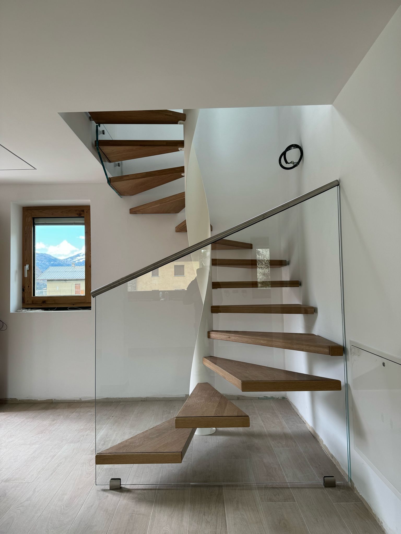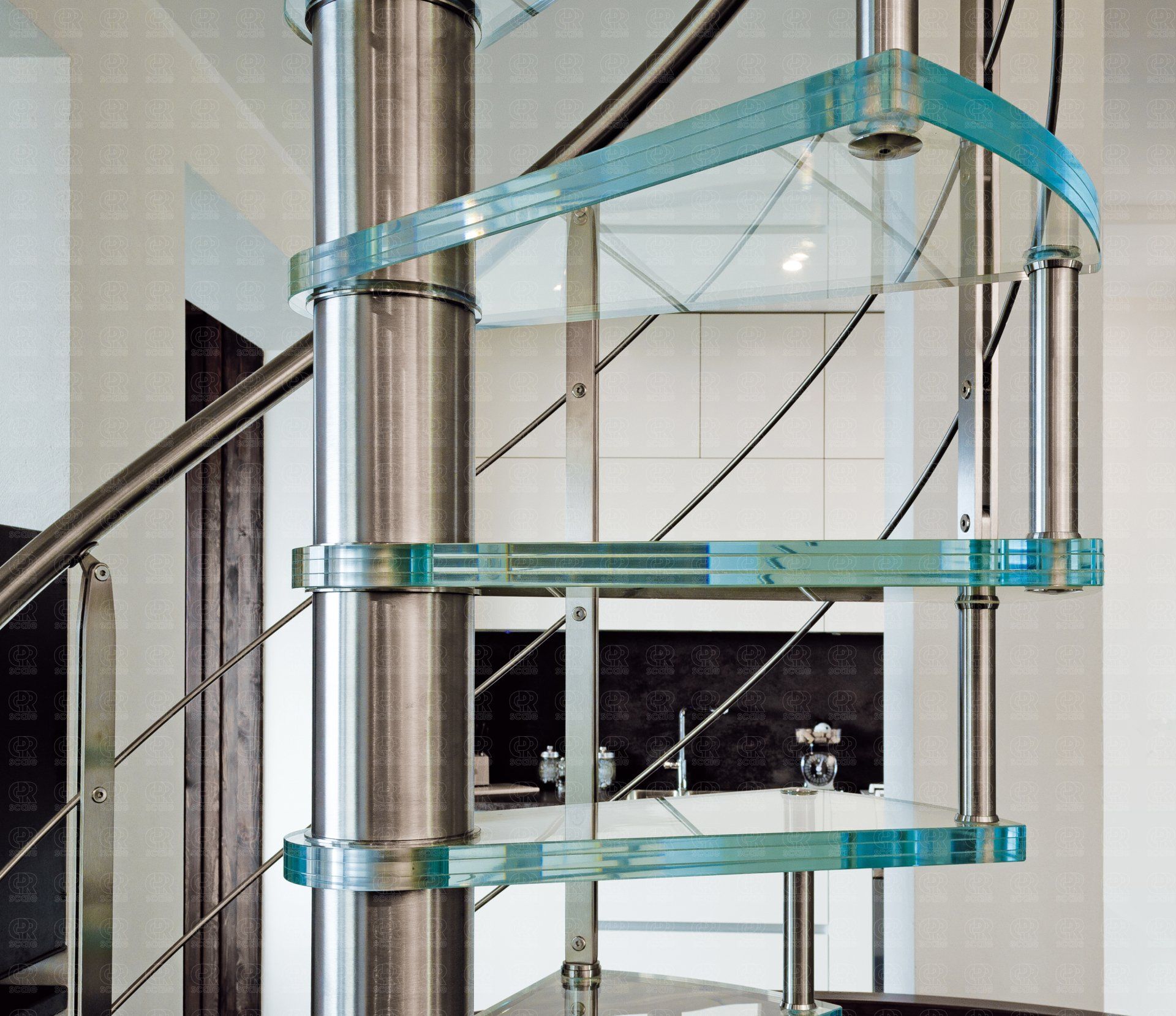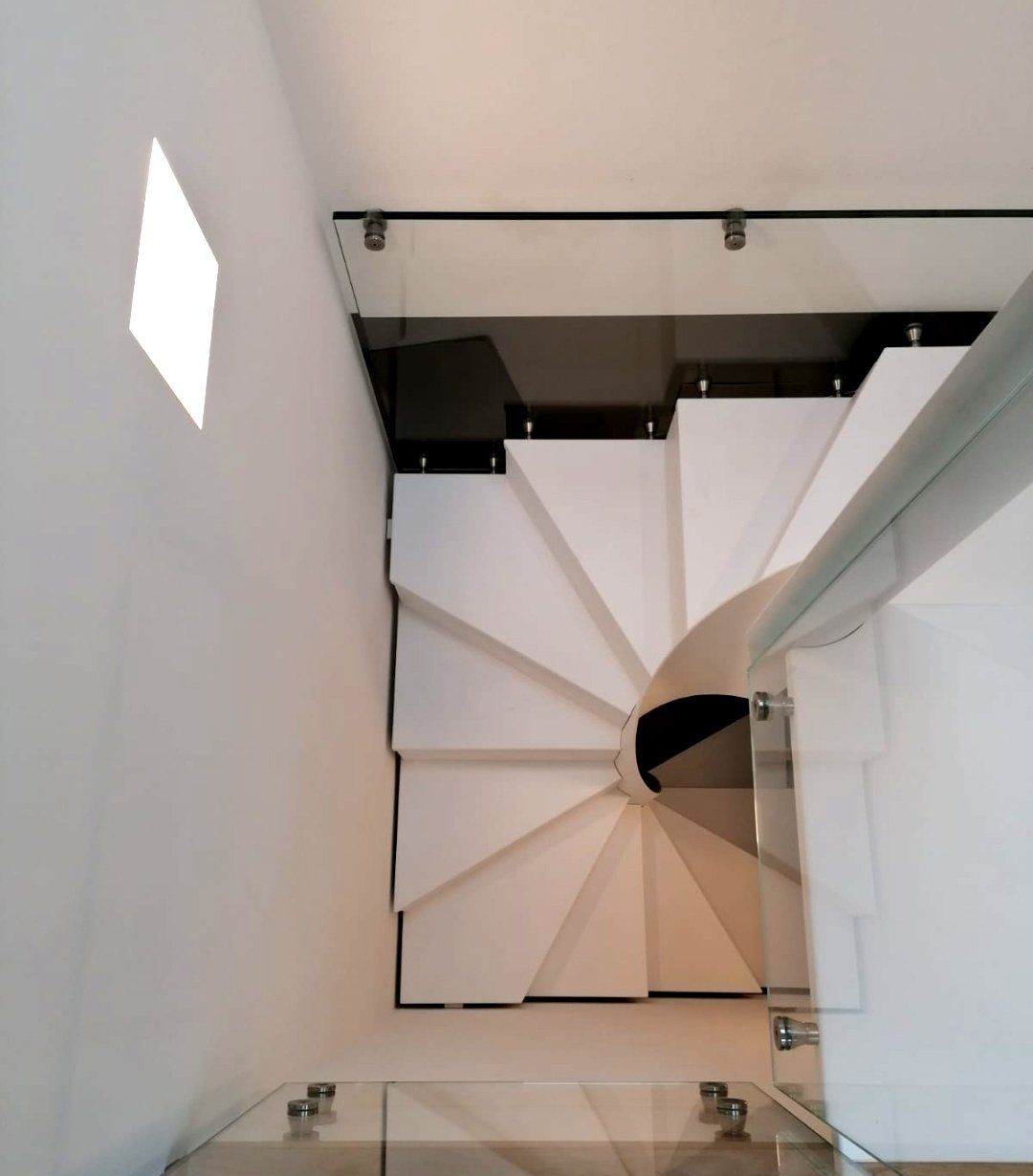 Questa tipologia di scala a chiocciola viene realizzata con vetri Pilkington Optiwhite™ garantendo standard qualitativi elevati, luminosità e ottima resistenza per la realizzazione dei gradini.